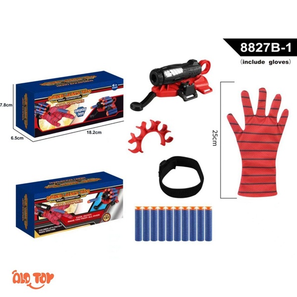 | محتویات بسته | دستکش طرح اسپایدرمن، لانچر، بند نگهدارنده، ۱۰ تیر فومی |